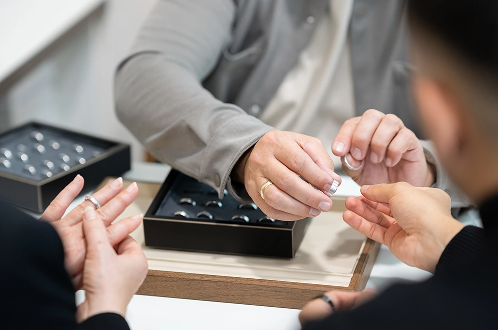 Auch nach der Übergabe Ihrer Trauringe stehen wir Ihnen zur Seite, etwa für Größenanpassungen, Aufarbeitungen oder spätere Umarbeitungen.